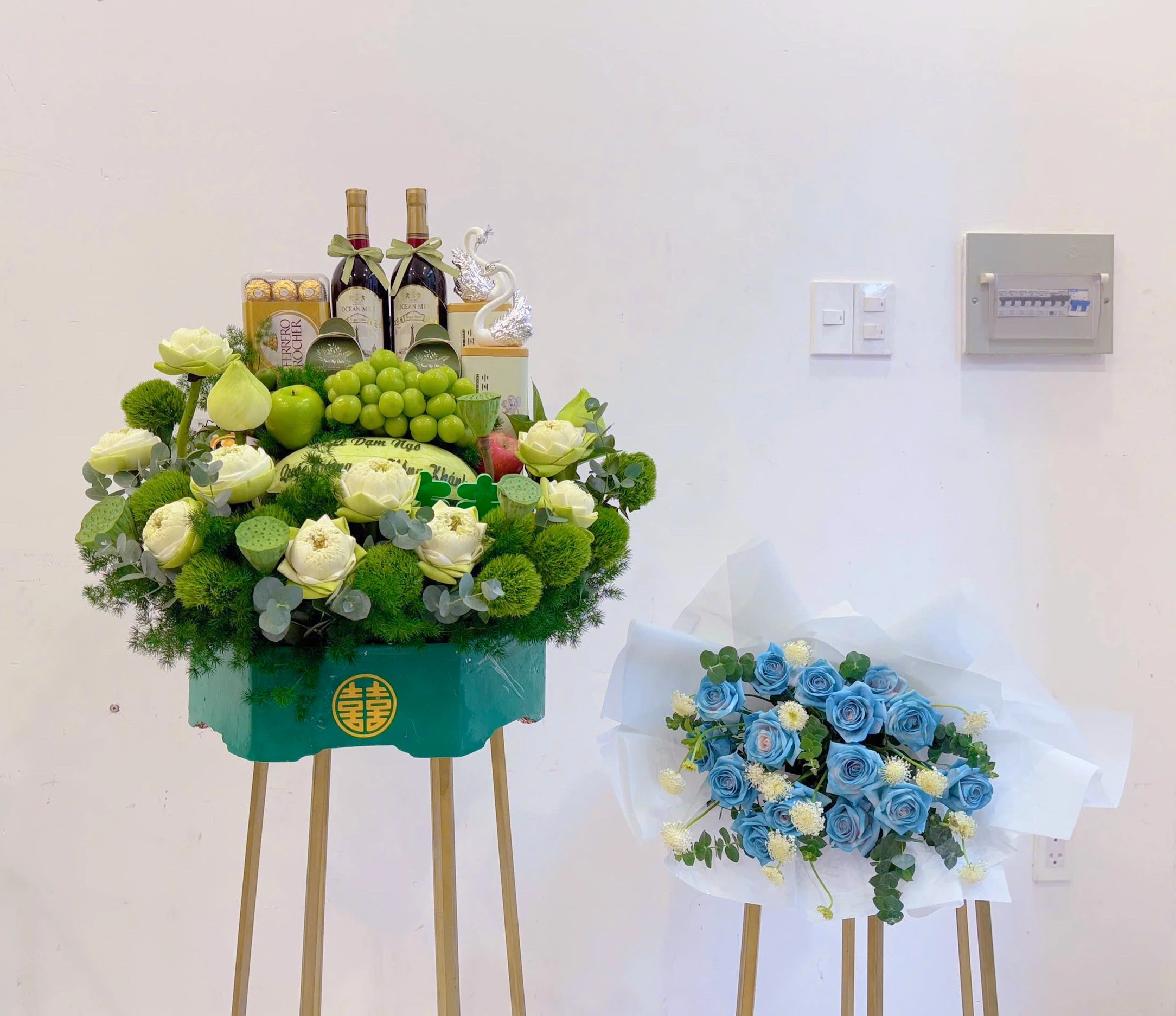 Mâm dạm ngõ hoa sen kèm bó hoa cầm tay