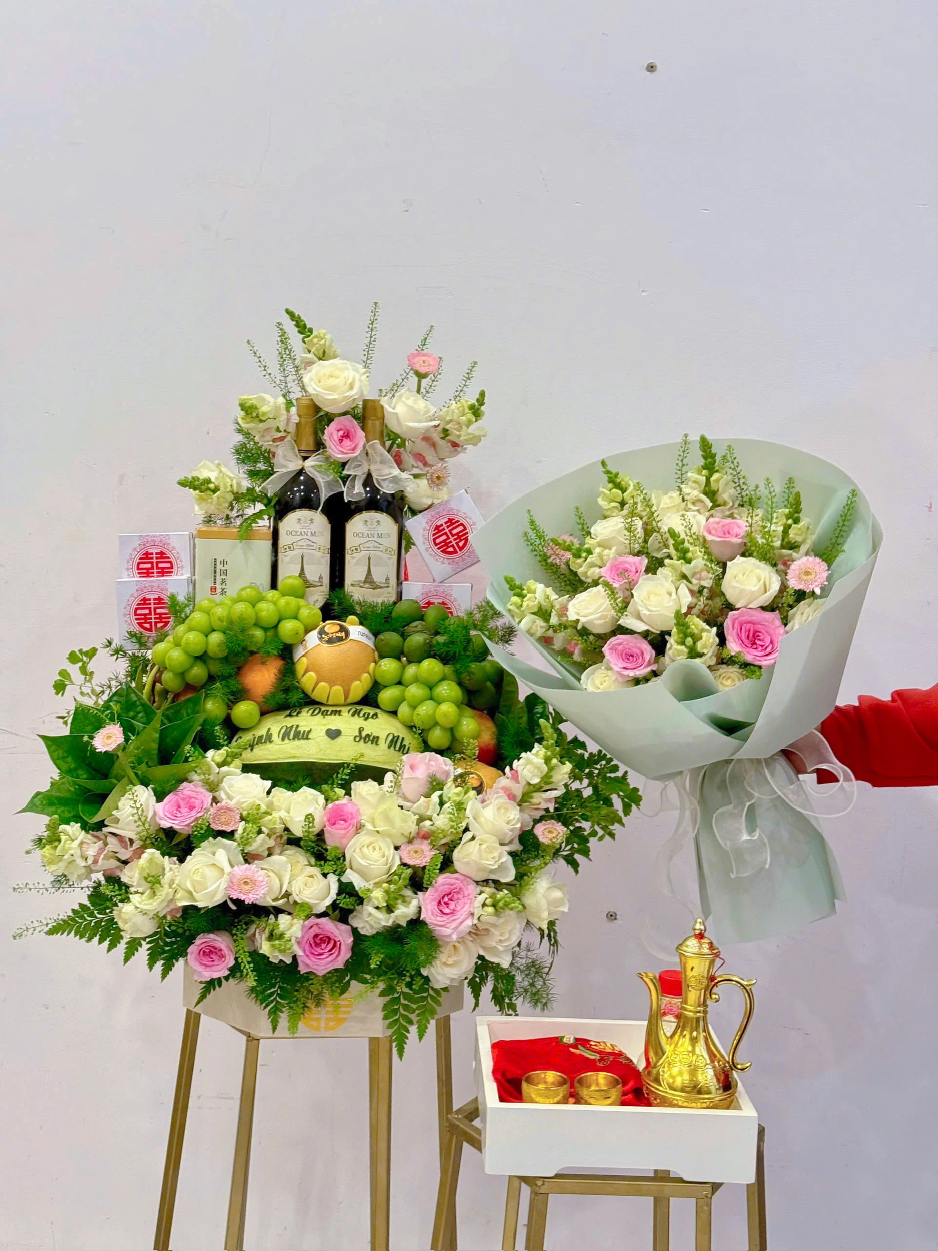 Set mâm dạm ngõ kèm bó hoa cầm tay